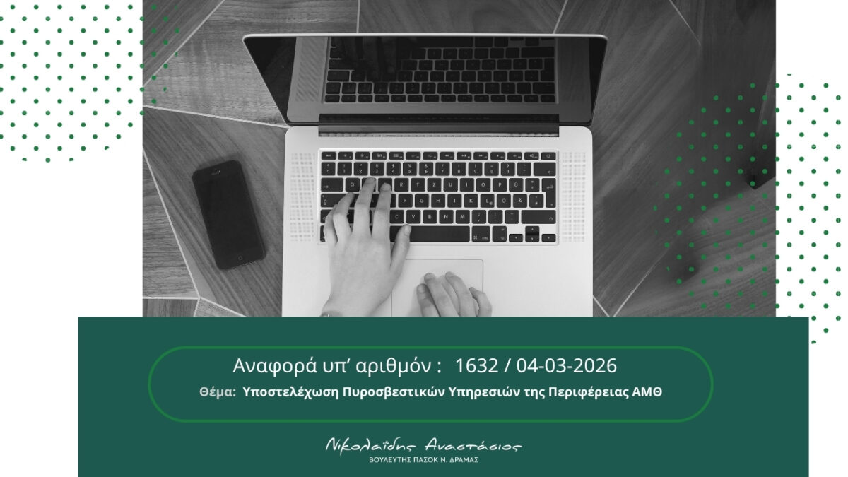 Παρέμβαση ευθύνης του Αναστάσιου Νικολαΐδη για την αντιμετώπιση της δημογραφικής κατάρρευσης της Δράμας «Τώρα είναι η ώρα για ένα ολοκληρωμένο, στοχευμένο και μακρόπνοο σχέδιο» […]