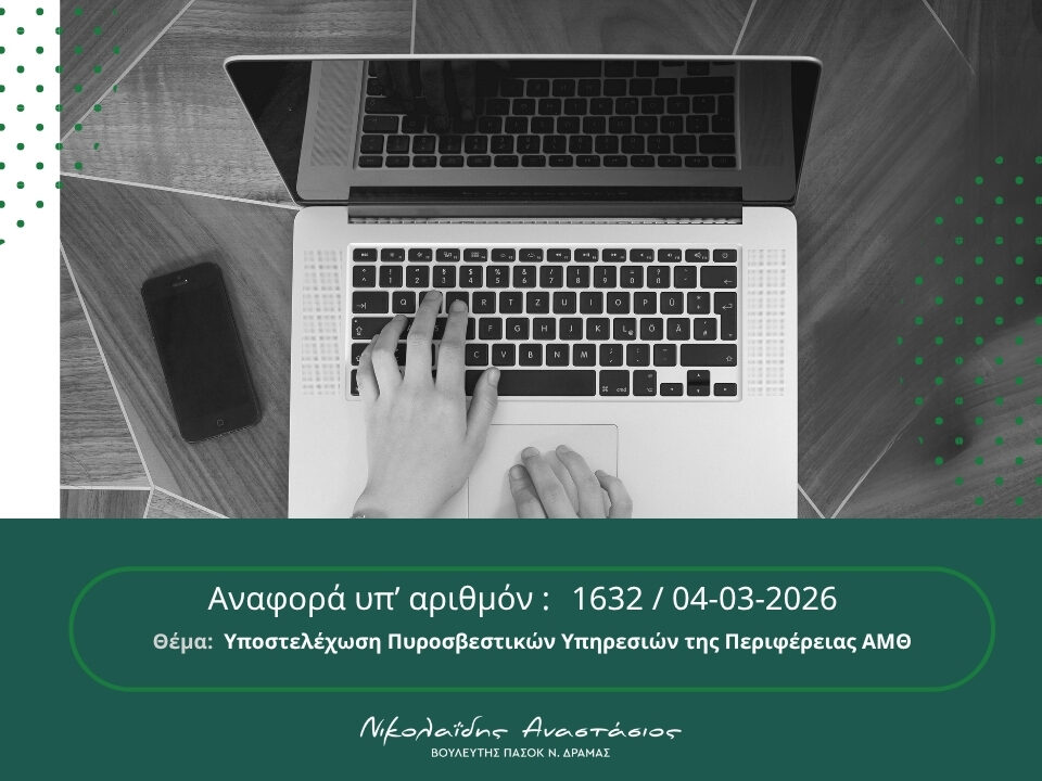 Κατάθεση συγκεκριμένων εφαρμόσιμων προτάσεων για την επίλυση του σοβαρού προβλήματος των αγροτών του Νομού Δράμας με τις δηλώσεις ΑΤΑΚ και ΚΑΕΚ Το πολύ σοβαρό πρόβλημα, το […]